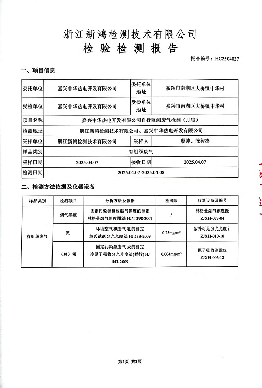 報(bào)告名稱(chēng):中華熱電4月廢氣檢測(cè)報(bào)告
