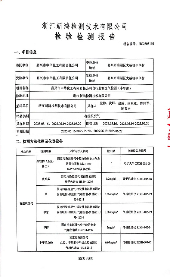 報(bào)告名稱(chēng):中華化工上半年廢氣檢測(cè)報(bào)告